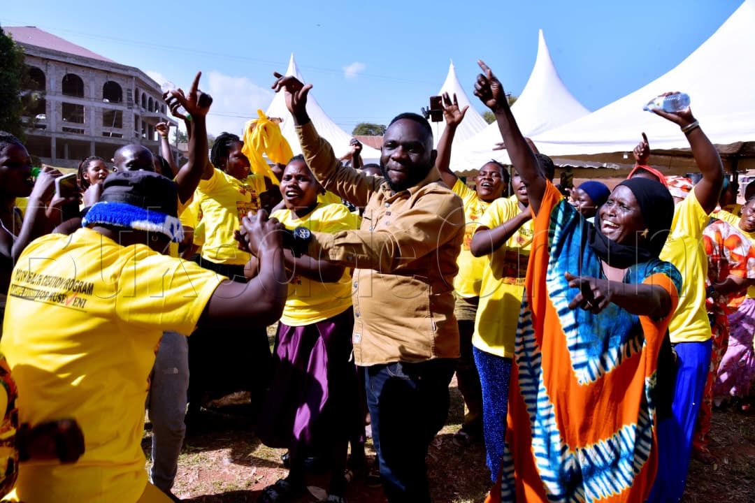 Mu butongole Ndase, abasiimbudde n’abakwasa fulaaga y’ekibiina okugenda okutalaaga ebyalo nga basaggulira pulezidenti Museveni akalulu era n’akuutira bano buli muntu akungeyo abantu 10 balonde Museveni olwo bo basirike kubanga obuwanguzi baba bamaze okutukako .